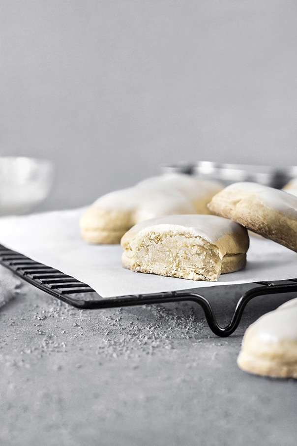 The Ghadam tal-Mejtin recipe is identical to the Traditional Maltese Figolli recipe, except for the shape. They are usually available in stores throughout the months of October and November. As is the case with figolli, store-bought bones do not compare to homemade. I totally recommend baking your own. You will need bone cookie cutters for the pastry and filling. The pastry and filling are both quick and easy to put together. After baking, dip the bones in a thick royal icing. You can also top them with crushed almonds, but I prefer them without the nuts. Then, enjoy and try to limit yourself to one or two!