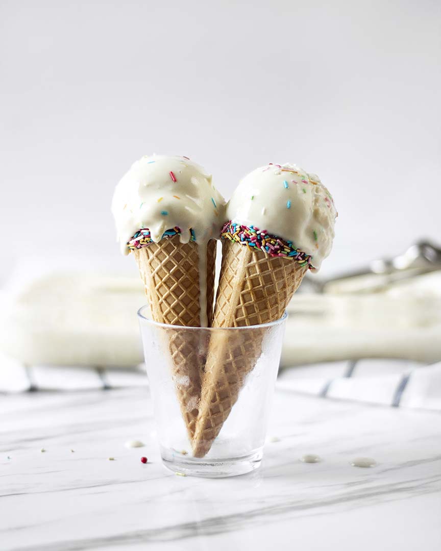 4. Freeze for at least 3 hours or ideally overnight to set. Leave out at room temperature for around 5 minutes before serving. Enjoy scooped in a glass, on a cone or as a milkshake!